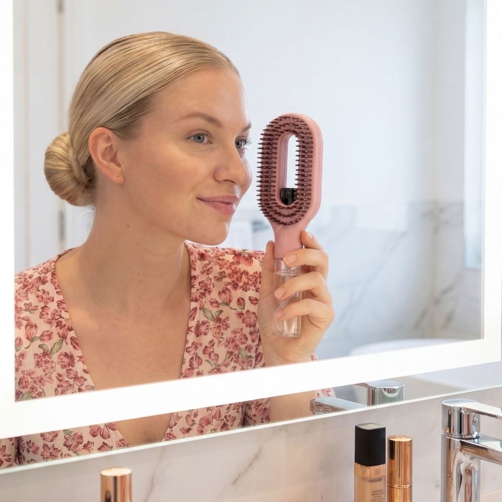 Weiche Massageborsten entwirren dein Haar sanft, während der integrierte Sprühnebel dein Haar beim Bürsten mit Feuchtigkeit versorgt.